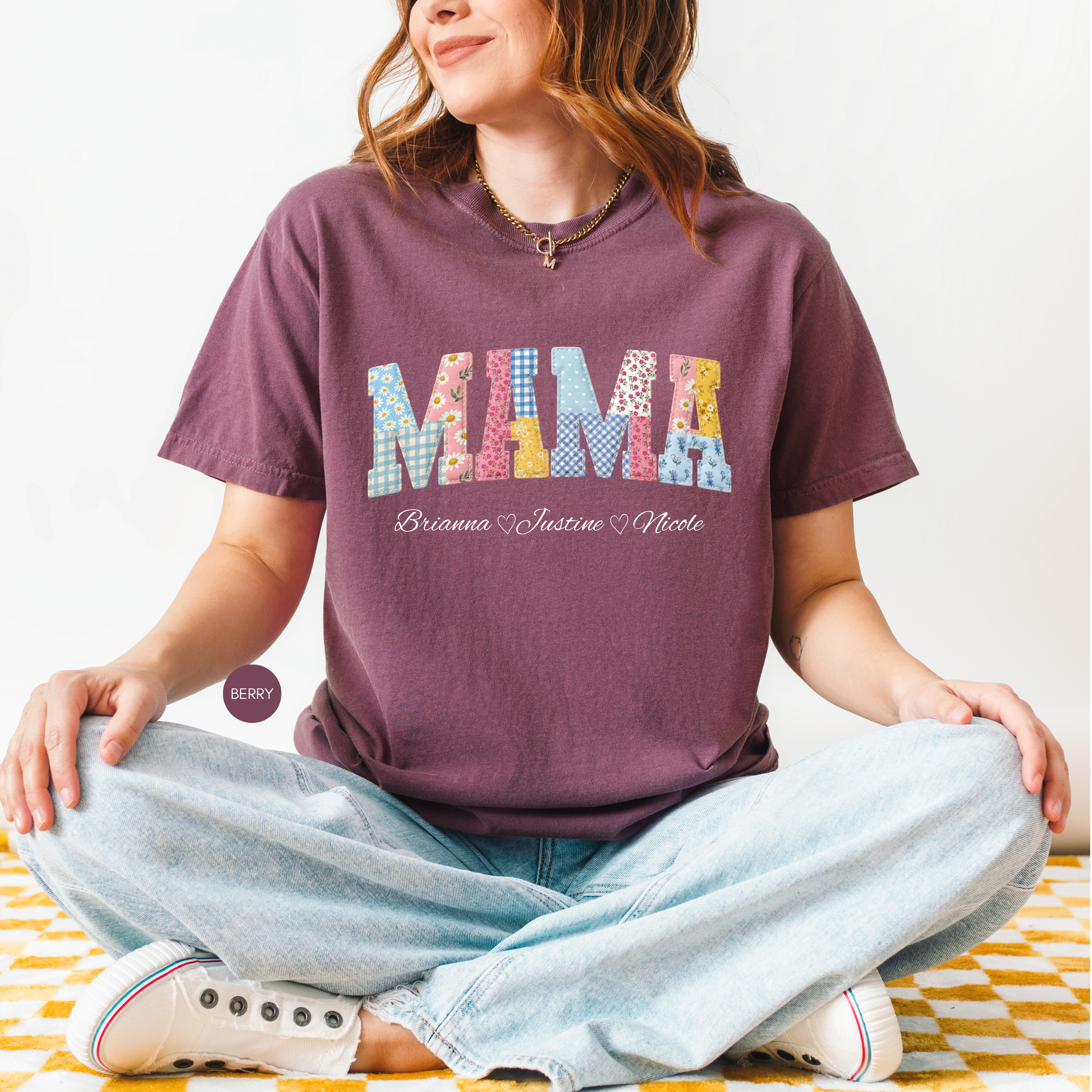 Personalized Mama Shirt with Names – Custom Patchwork Mom Gift